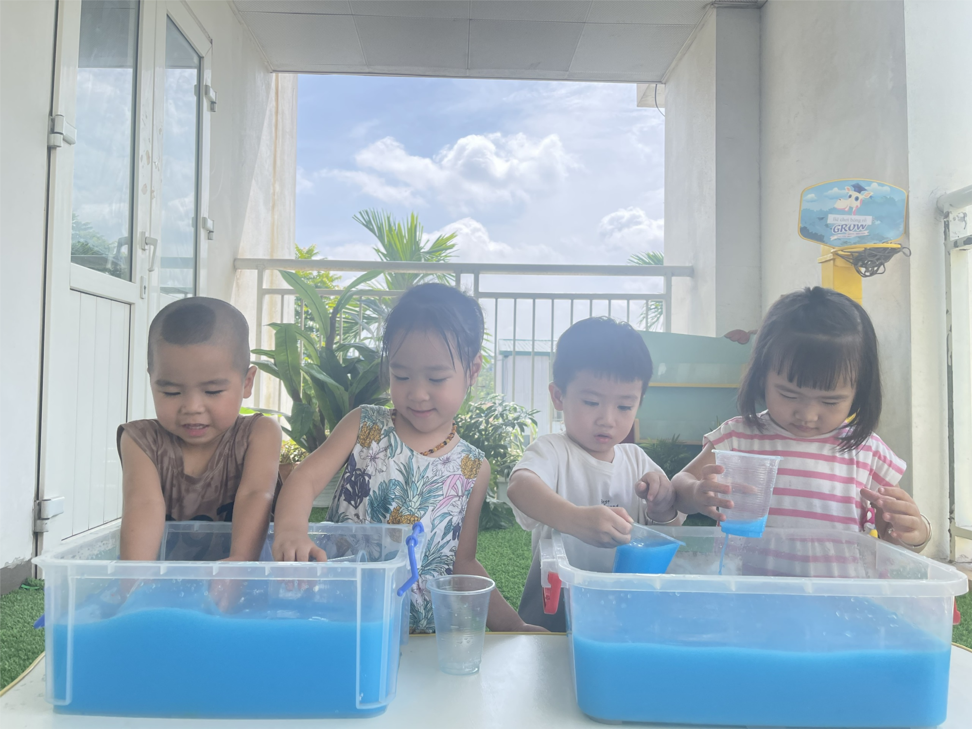 Để tạo nên những cơn mưa kỳ diệu bằng cốc nước nhỏ - các bé sẽ lấy cốc múc nước vào tạo thành những giọt nước từ cốc rơi xuống như những phép màu khiến cả thế giới thêm phần kỳ diệu, các bé cùng chơi với cốc nhựa nhỏ tạo nên cơn mưa vui vẻ. Mỗi giọt nước rơi mang theo niềm vui và sự khám phá bất tận.