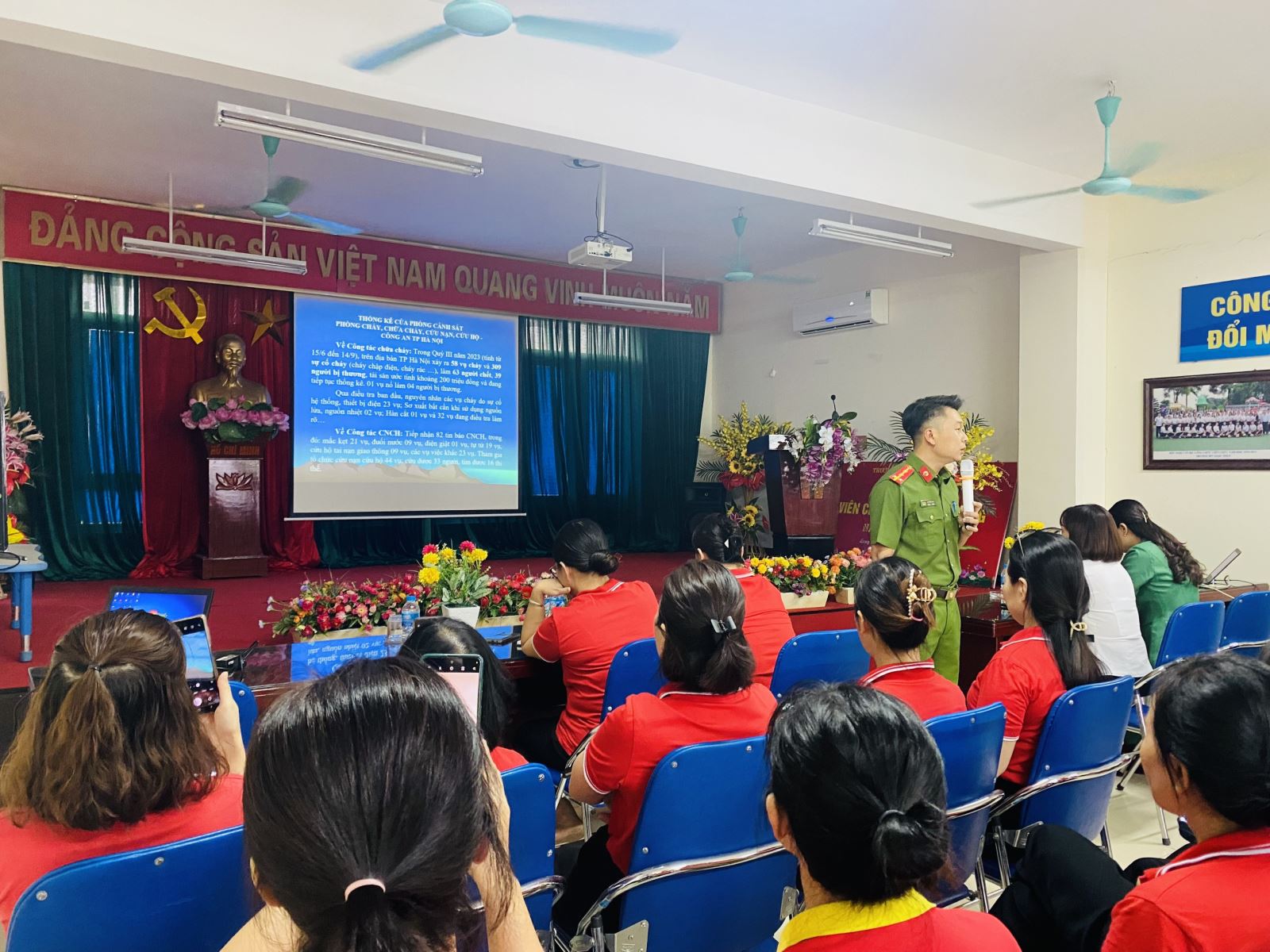Tới dự và truyền đạt nội dung buổi tập huấn có đồng chí Đại uý Lê Việt Linh - Cán bộ Phòng Cảnh sát Phòng cháy, chữa cháy và Cứu nạn, cứu hộ - CATP Hà Nội