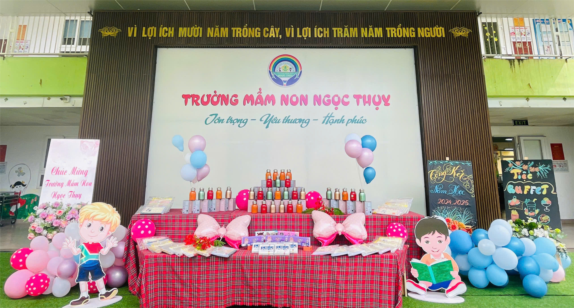 iệc buffet đầm ấm là dịp để các con quây quần thưởng thức món ngon cùng bạn bè, các em và các anh chị trong trường và từ đó nuôi lớn tình cảm gắn bó mến thương với gia đình thứ 2 của các con - gia đình MN Ngọc Thuỵ.