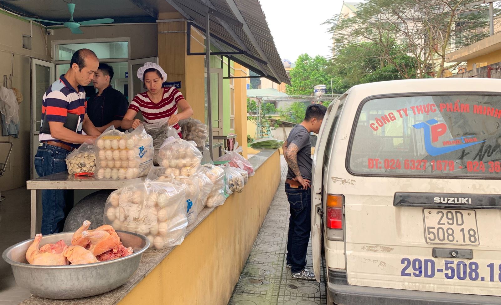 Ảnh minh họa: Phụ huynh tham gia giao nhận thực phẩm với nhà trường
