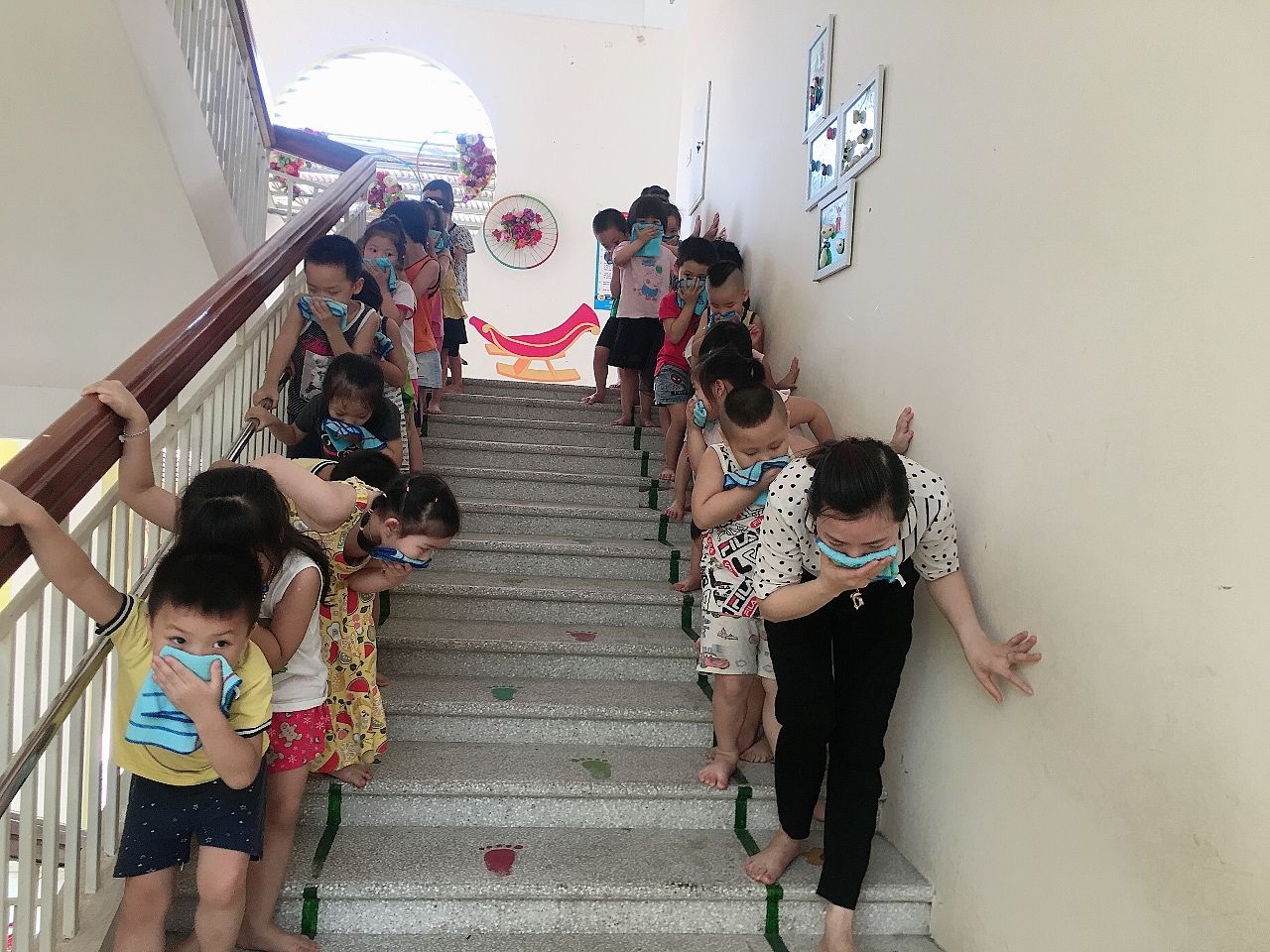 Nếu ở nhà cao tầng hoặc khu chung cư, trẻ cần hô hoán báo động, kêu gọi sự giúp đỡ của mọi người. Trường hợp cháy ở nơi khác, khi có chuông báo cháy thì cần nhanh chóng di chuyển để thoát nạn.
