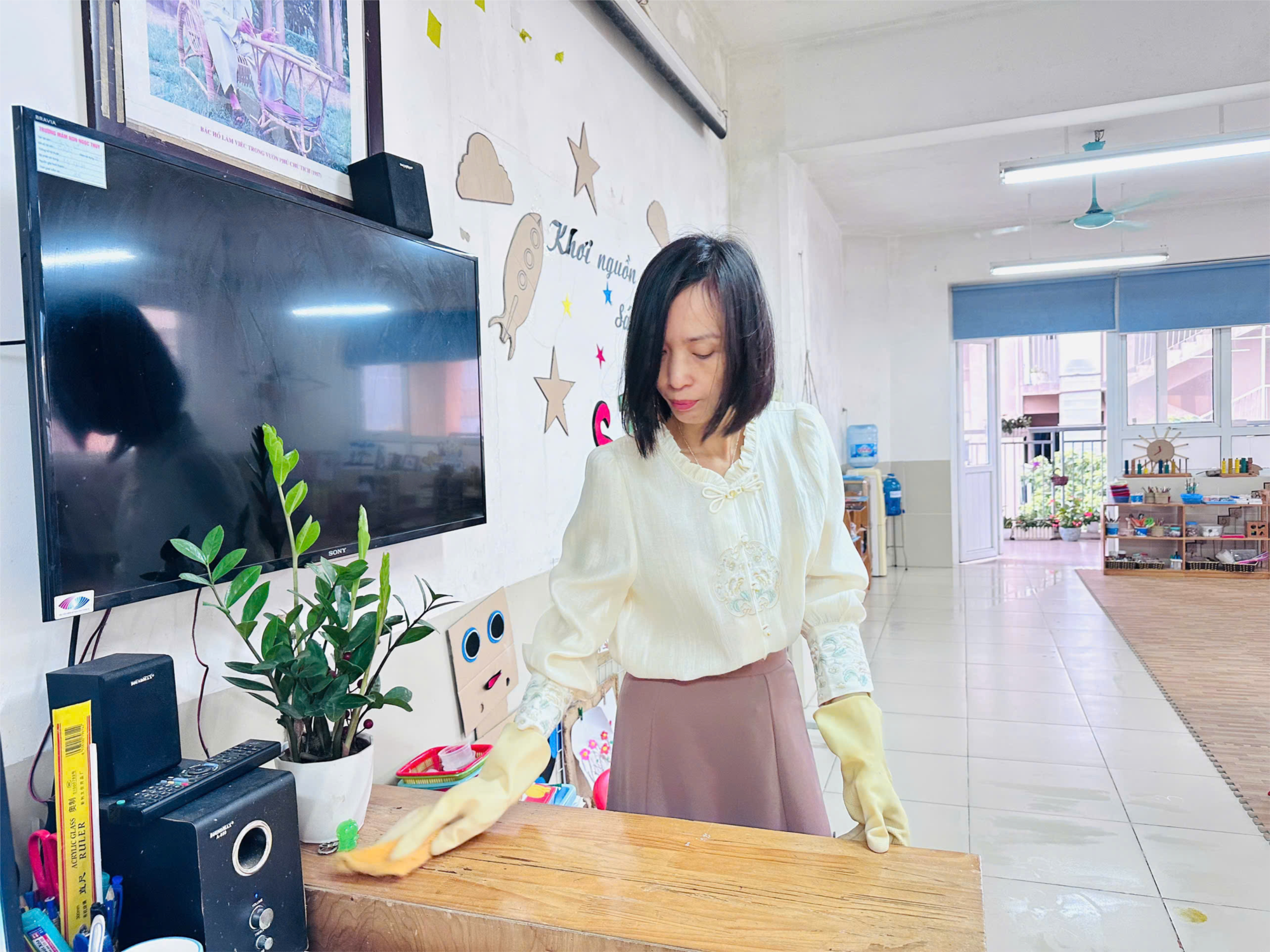 🔹 Tổng vệ sinh toàn bộ lớp học, hành lang, sân chơi và khu vực chức năng.