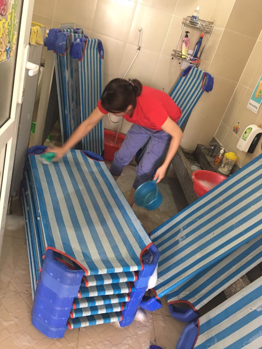 🔹 Tổng vệ sinh toàn bộ lớp học, hành lang, sân chơi và khu vực chức năng.