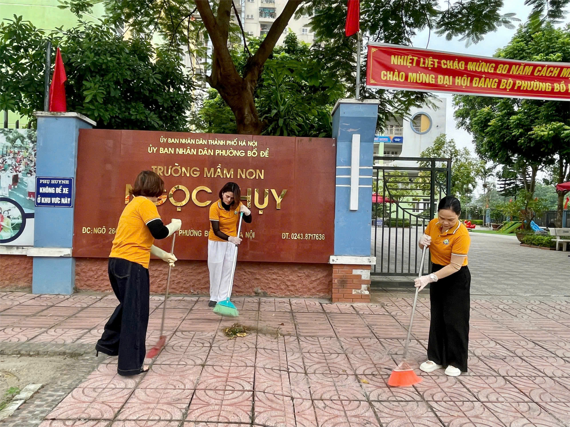 Thực hiện Thông báo số 334/TB-UBND ngày 23/10/2025 của UBND phường Bồ Đề về việc tổ chức tổng vệ sinh môi trường, diệt bọ gậy phòng chống sốt xuất huyết, sáng ngày 25/10/2025 CBGVNV trường mầm non Ngọc Thụy đã tích cực ra quân tiến hành tổng vệ sinh môi trường, thu gom rác, phế liệu trong và ngoài khuôn viên nhà trường.
