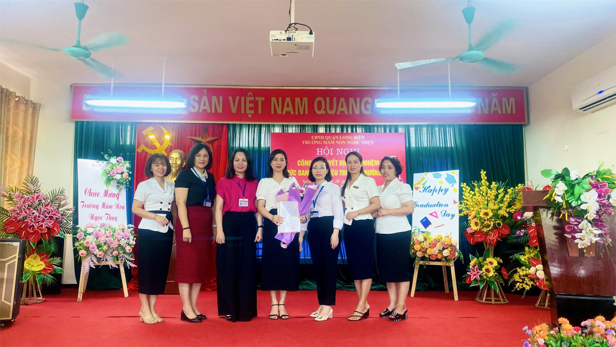 Chúc đ/c tân Phó Hiệu trưởng nhà trường - đ/c Đào Thị Quỳnh Trang dồi dào sức khỏe để cùng tập thể nhà trường cống hiến nhiều hơn nữa cho sự nghiệp giáo dục mầm non. Chúc trường mầm non Ngọc Thụy ngày càng phát triển, nhận được sự tín nhiệm của các cấp lãnh đạo, sự tin yêu của toàn thể phụ huynh trong trường.
