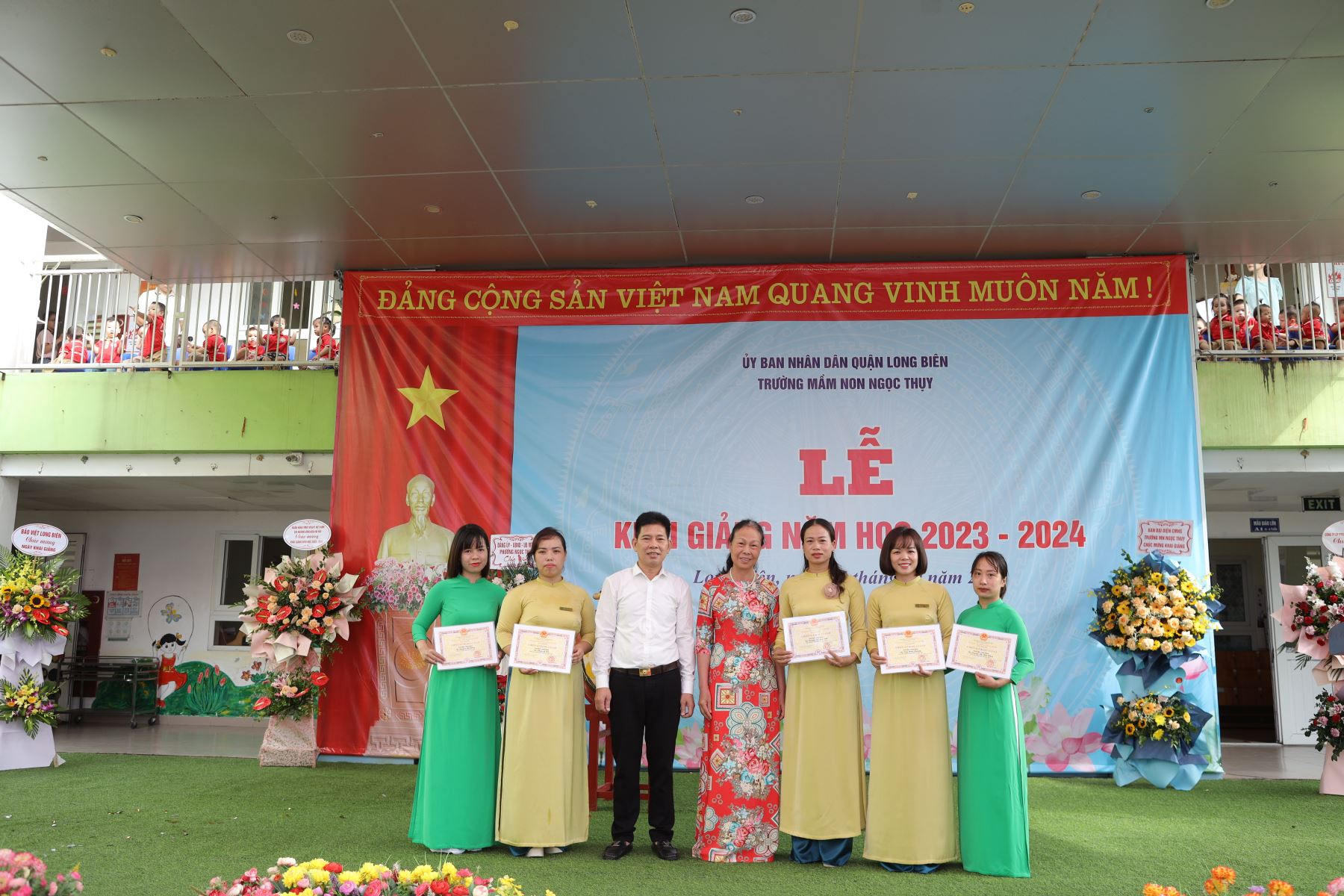 Trong suốt quá trình xây dựng và phát triển, nhà trường luôn nhận được sự quan tâm chỉ đạo chặt chẽ của Ủy ban nhân dân quận Long Biên, Phòng Giáo dục và Đào tạo quận Long Biên đặc biệt là sự quan tâm giúp đỡ của các đồng chí Lãnh đạo Đảng ủy - UBND, các ban ngành đoàn thể và nhân dân địa phương phường Ngọc Thụy; những đóng góp, đồng hành của các bậc phụ huynh cùng nhà trường trong công tác chăm sóc, giáo dục trẻ. Và ngày hôm nay, nhân dịp khai giảng năm học mới, nhà trường cũng rất vui mừng được chào đón sự hiện diện của quý vị đại biểu, quý phụ huynh cùng các bé yêu MN Ngọc Thuỵ. Sự có mặt của quý vị Đại biểu, quý phụ huynh là nguồn động viên lớn giúp cho cô và trò trường MN Ngọc Thụy thêm nguồn động lực để bước vào năm học mới với khí thế mới.