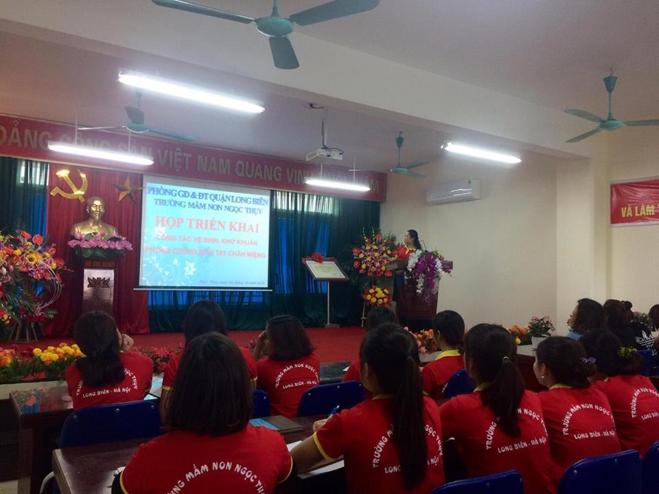 Năm học 2017 – 2018, toàn trường có 19 lớp học với tổng số 700 học sinh. Thực hiện nhiệm vụ năm học, được sự chỉ đạo sát sao của UBND quận Long Biên, phòng Giáo dục và Đào tạo quận, công tác y tế học đường trong đó có phòng chống dịch bệnh được nhà trường hết sức chú trọng. Không để dịch bệnh tay chân miệng có điều kiện bùng phát và lây lan trong dịp này, toàn bộ các lớp học, bề mặt bàn ghế, sàn nhà, cầu thang, tay nắm cửa, sân trường được nhà trường thực hiện vệ sinh thường xuyên, khử khuẩn đồ chơi, đồ dùng học tập của trẻ bằng xà phòng hoặc các chất tẩy rửa thông thường theo hướng dẫn của cán bộ TTYT quận và trạm y tế phường. Nhà trường trang bị đủ nước sạch cho sinh hoạt hàng ngày của trẻ, cung cấp đủ nước uống, đảm bảo công tác VSATTP tại bếp ăn bán trú.