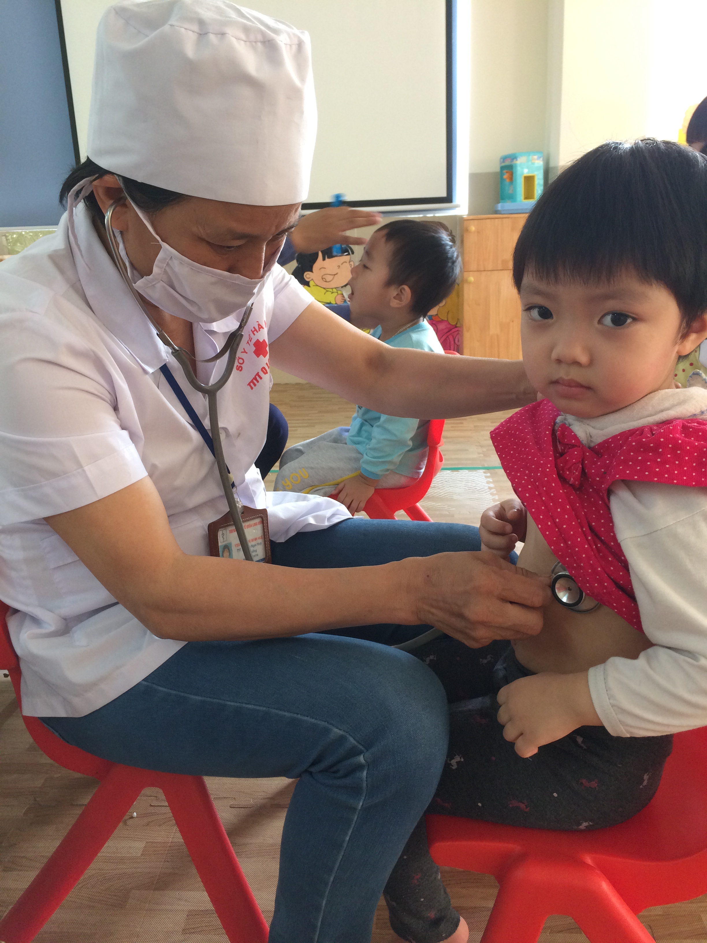 Trong 2 ngày 23 và 24/3/2017, Trường Mầm non Ngọc Thụy đã phối hợp với Trạm y tế phường Ngọc Thụy tiến hành kiểm tra sức khỏe lần 2 năm học 2016 - 2017 cho trẻ ở tất cả các khối lớp của trường với các nội dung: Cân nặng, chiều cao, khám tai, mắt, mũi, họng, kiểm tra tim và một số bệnh liên quan đến đường hô hấp, da liễu ...