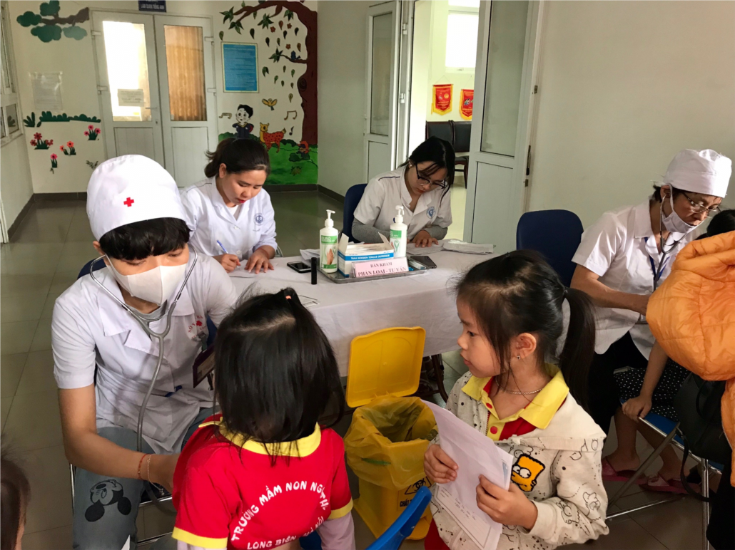 Một tuần trước ngày tiêm, cán bộ y tế trạm y tế phường phối hợp với cán bộ y tế nhà trường, giáo viên chủ nhiệm các lớp, lập danh sách, viết giấy mời và gửi đến từng bậc phụ huynh của các em học sinh.Trong hai ngày 03 và 04 tháng 12 năm 2018 nhà trường đã kết hợp với Trạm Y tế phường tổ chức tiêm vắc xin Sởi-Rubella cho tất cả học sinh của trường.