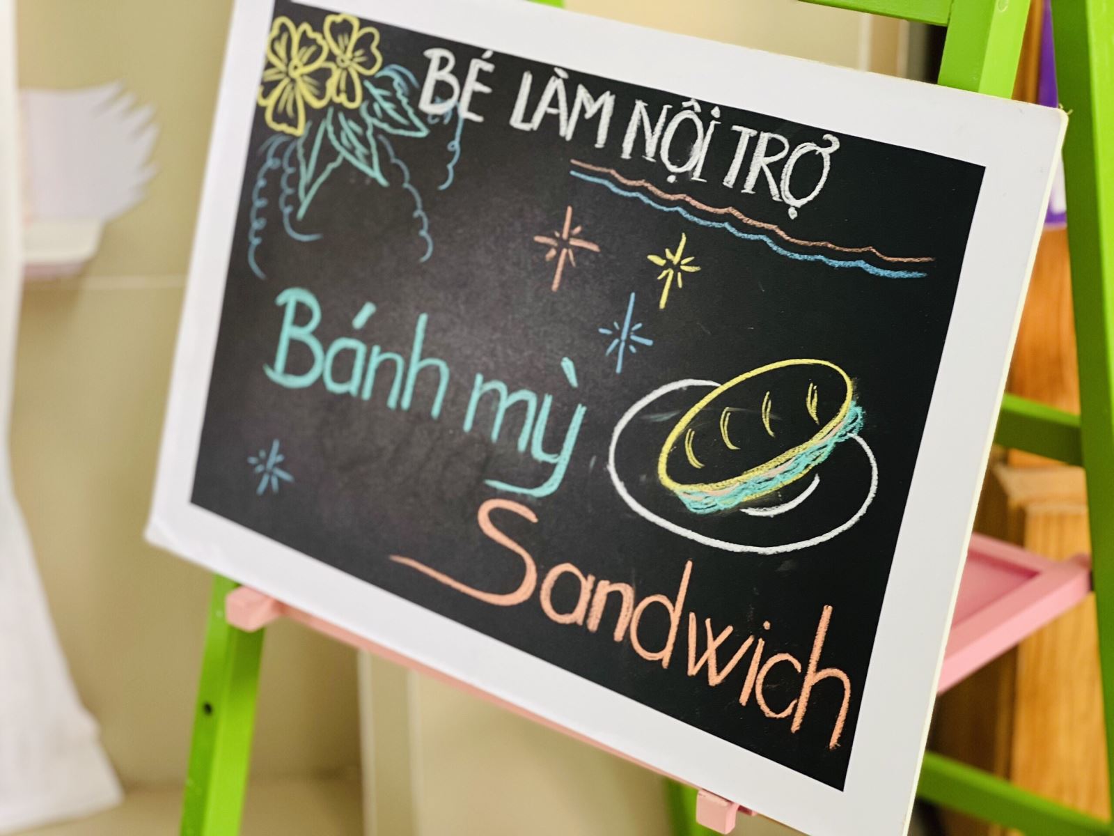 Ngày hôm nay, các bạn nhỏ Mẫu giáo nhỡ B3 được tự tay trổ tài đóng vai siêu đầu bếp nhí tạo ra món bánh Sandwich và trang trí ngộ nghĩnh, bắt mắt.