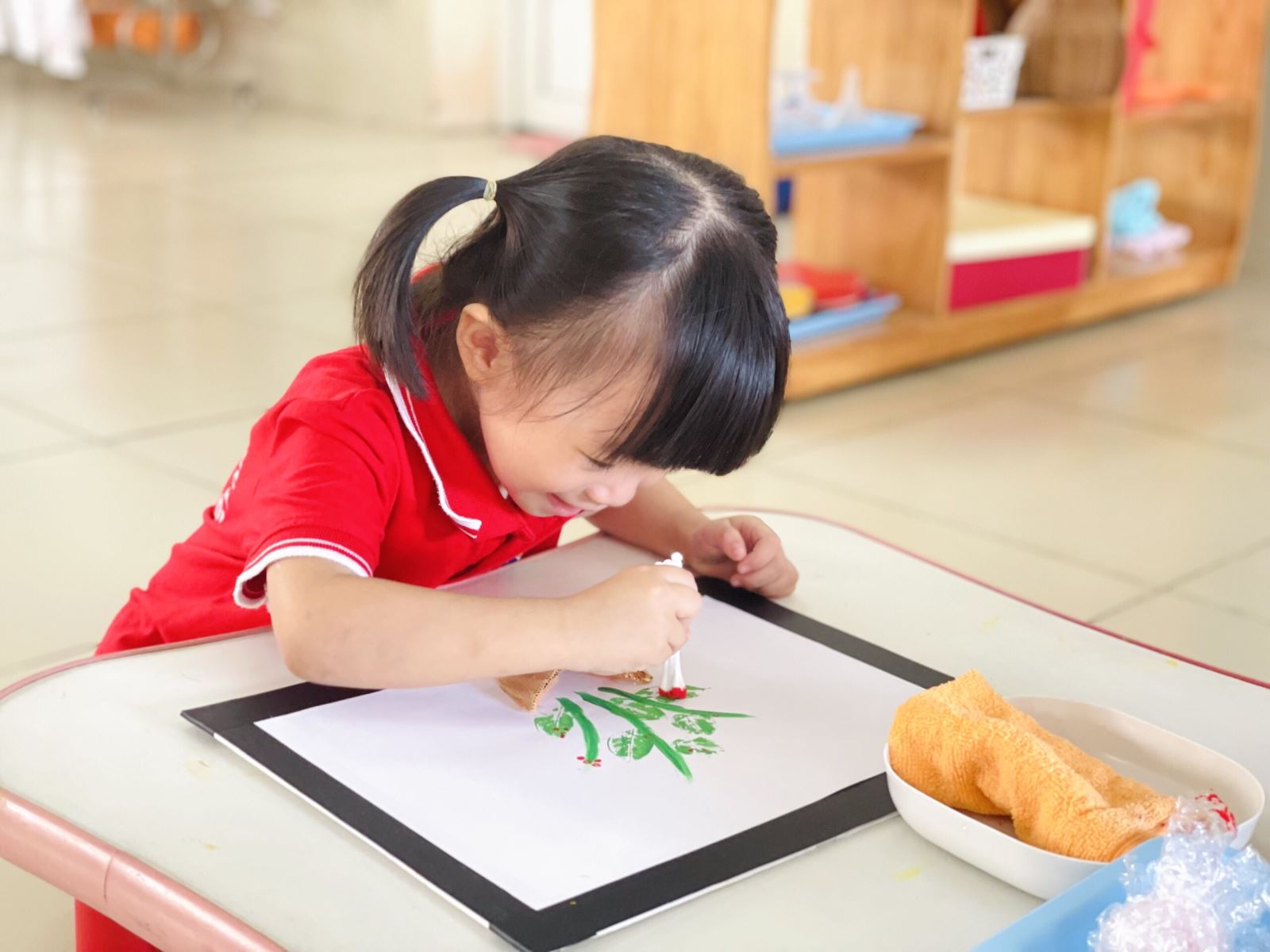 Bố mẹ hãy cùng xem những khoảnh khắc yêu thương ngọt ngào của các em bé trong hoạt động “Bé chấm màu” và “NBTN màu xanh - màu đỏ” nhé!
