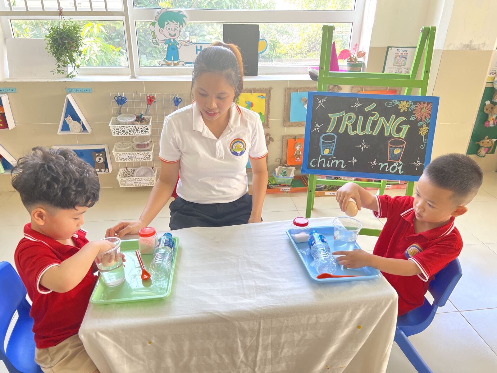 Các bạn nhỏ lớp MGN B4 đã có một giờ thí nghiệm rất vui và cực kỳ đặc biệt trong ngày hôm nay. Các bạn ấy rất thích thú với thí nghiệm “Trứng chìm, trứng nổi”.