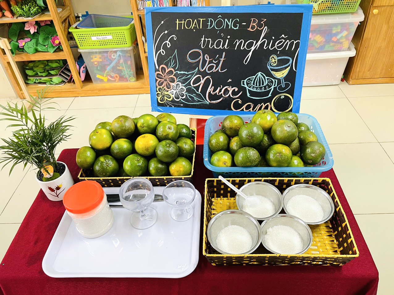 Bố mẹ cùng dõi theo một ngày bận rộn và hân hoan niềm vui của các bạn nhỏ lớp MGN B3 trong giờ trải nghiệm “Bé tập vắt nước cam” nhé!