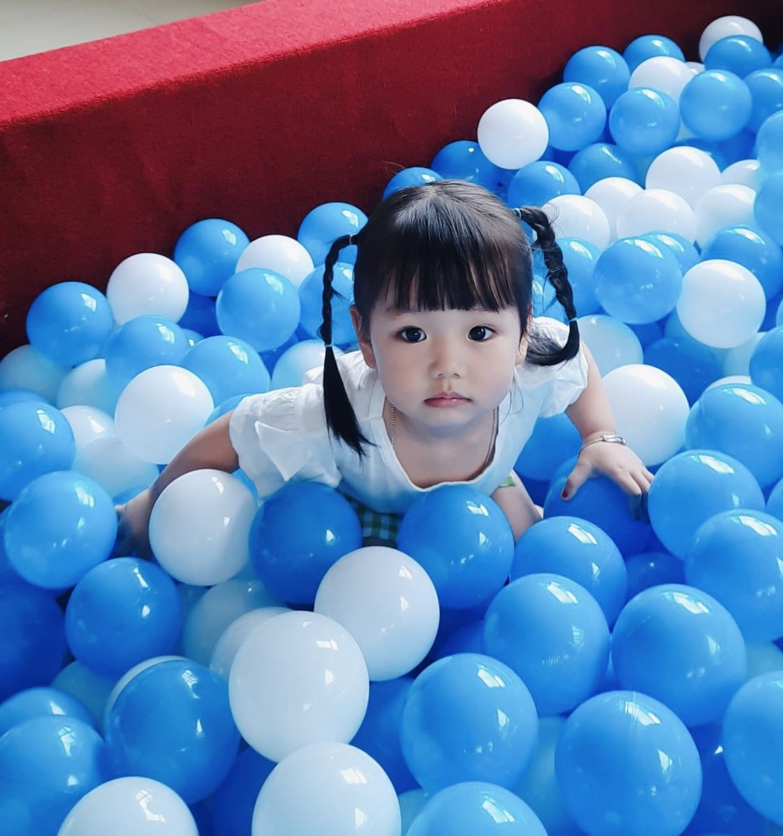 Đó là niềm vui được say sưa, chú tâm trọn vẹn vào khu vui chơi mới của trường; những quả bóng như những người bạn mới cùng em bé vui đùa; tung bóng, ném bóng - đều được các em bé D1 thử sức.