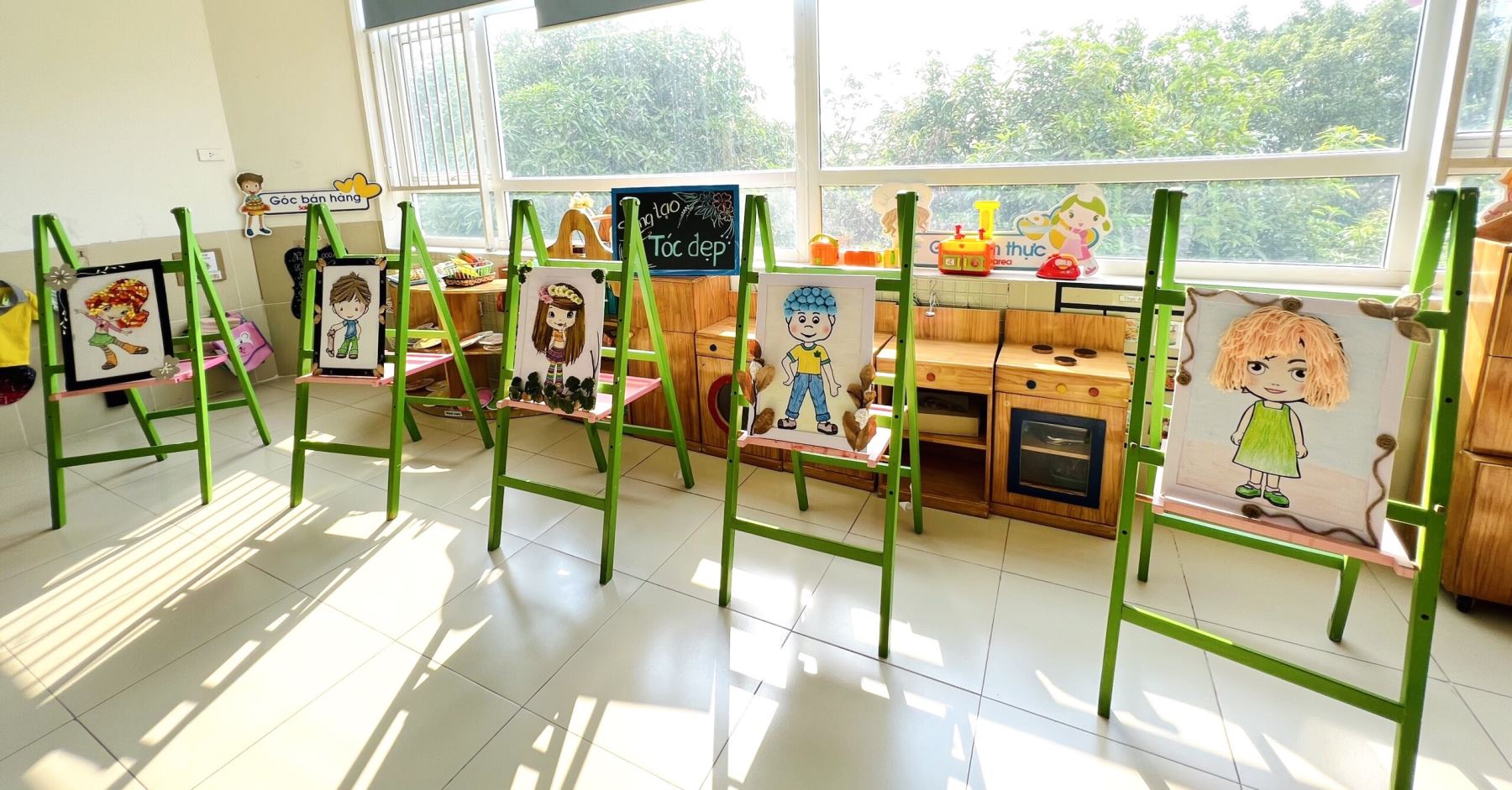 Trước mỗi giờ học, các bạn sẽ được hướng dẫn chuẩn bị sẵn sàng vật liệu và dụng cụ sáng tạo. Sau đó, từ những bông hoa, chiếc lá hay bất cứ nguyên vật liệu gì các bạn tìm đc ở các góc, mỗi bạn nhỏ được thoả sức tạo nên một tác phẩm của riêng mình.