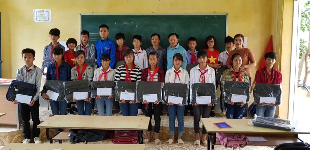 Trao quà cho nhà trường và các em