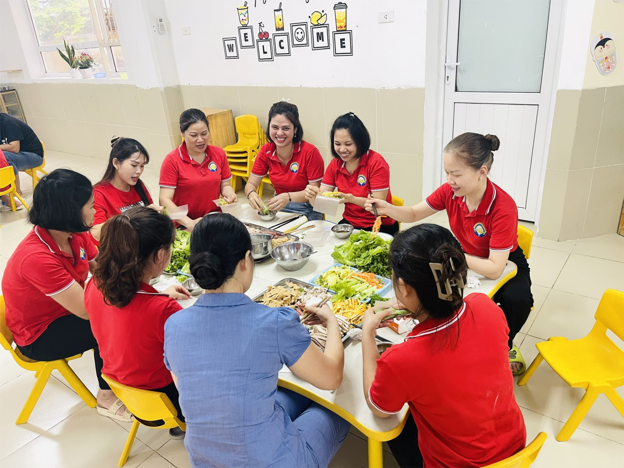 Mâm cơm hôm nay thịnh soạn hơn, bảo đảm chất lượng dinh dưỡng, an toàn vệ sinh thực phẩm và đặc biệt là rộn vang tiếng cười, niềm hân hoan của Công đoàn viên sau một năm học với nhiều thành tích.