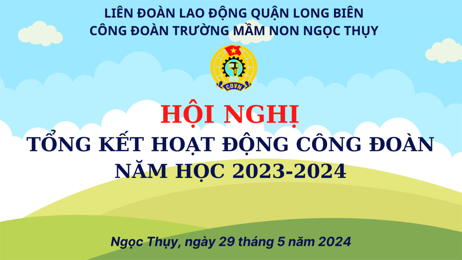 Minh Phương báo cáo kết quả hoạt động Công đoàn trường MN Ngọc Thuỵ năm học 2023- 2024; đồng thời biểu dương, khen thưởng các đồng chí đoàn viên công đoàn đã có nhiều đóng góp trong hoạt động Công đoàn các cấp.