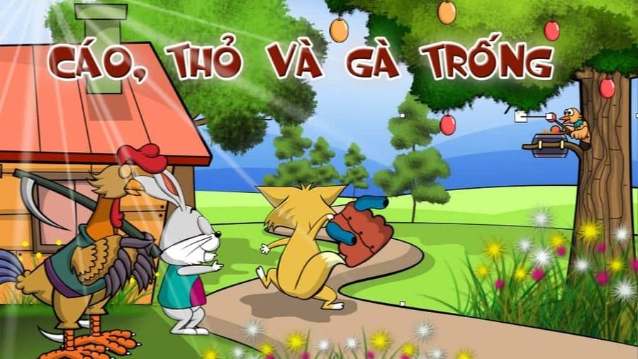 Gà Trống và Thỏ cùng về nhà Thỏ. Gà Trống cất tiếng hát: